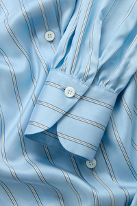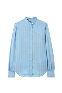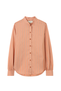 Collarless Blouse in Striped Silk